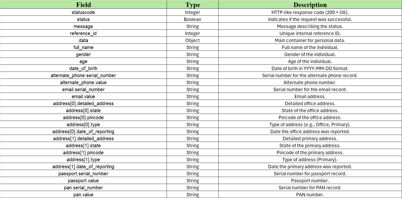 API Referencepost https://uat.paysprint.in/sprintverify-uat/api/v1/verification/fetch_personal_profileResponse Field Description