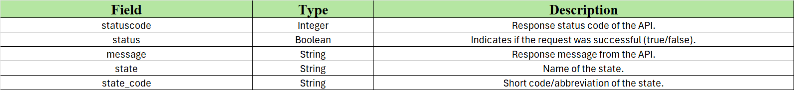 State List getpost https://uat.paysprint.in/sprintverify-uat/api/v1/verification/getStateListResponse Fields Description