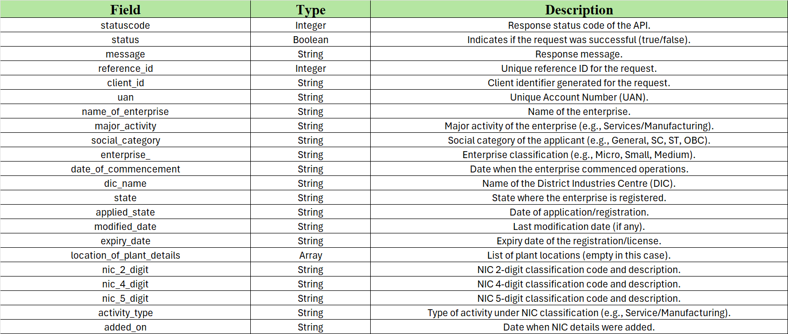 Udyam Aadhaar V1post https://uat.paysprint.in/sprintverify-uat/api/v1/verification/udyam_aadhaar_verifyResponse Fields Description